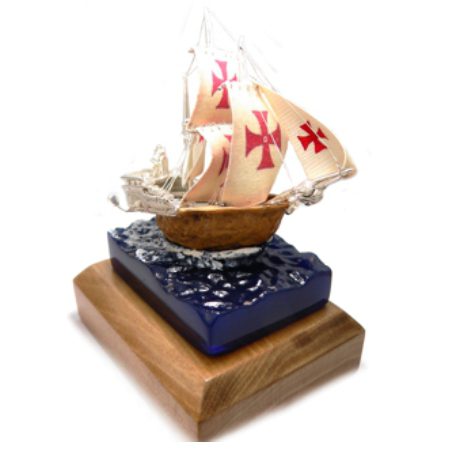 ref WS005, Barco en plata cáscara de nuez, resina y madera