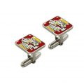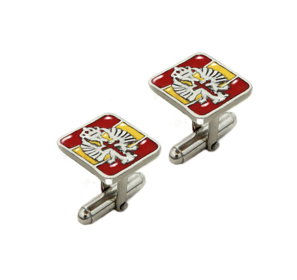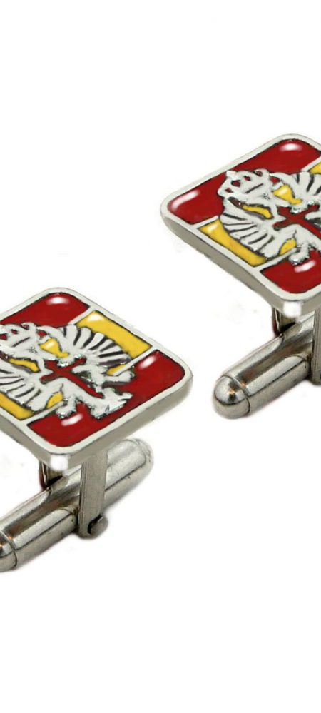 Gemelos emblema Ejército de Tierra en plata 1ªley y esmalte al fuego bandera España fondo