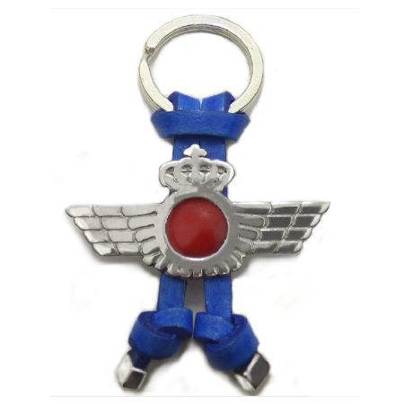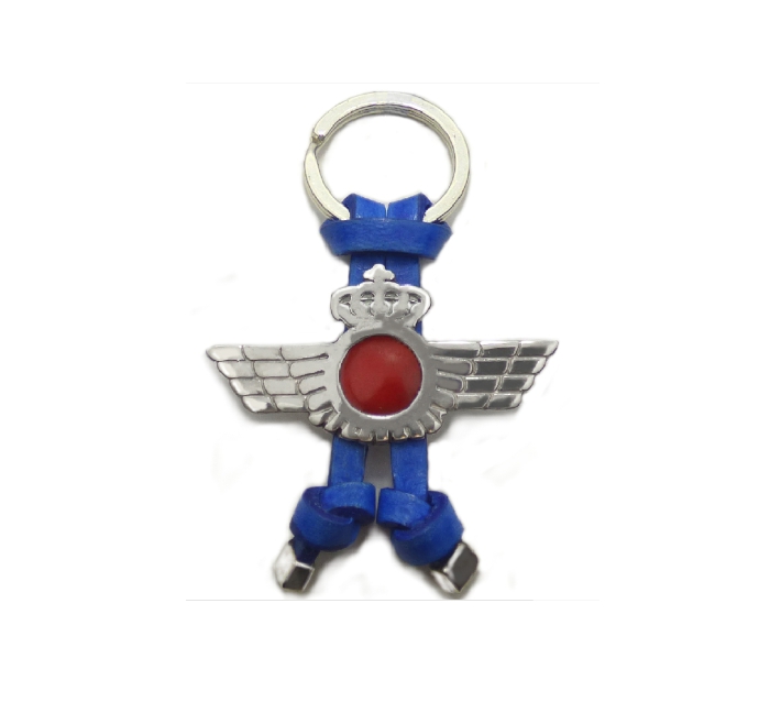 LLAVERO EMBLEMA EJÉRCITO AIRE, PLATA, ESMALTE AL FUEGO Y CUERO