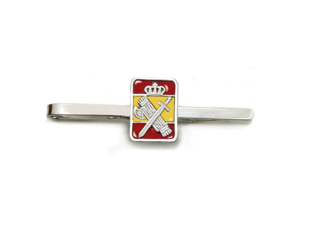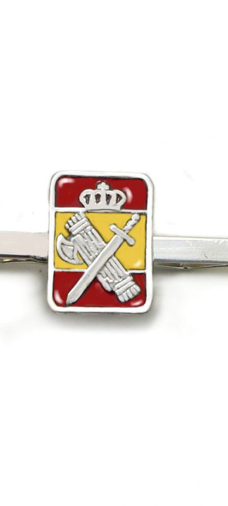 Pisacorbata Guardia Civil, en plata 1ªLey y esmalte al fuego con bandera España de fondo