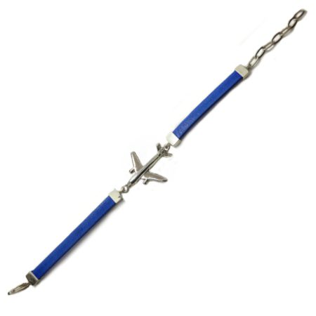 ref. 077-G. Pulsera A320plata, cuero plano azul
