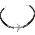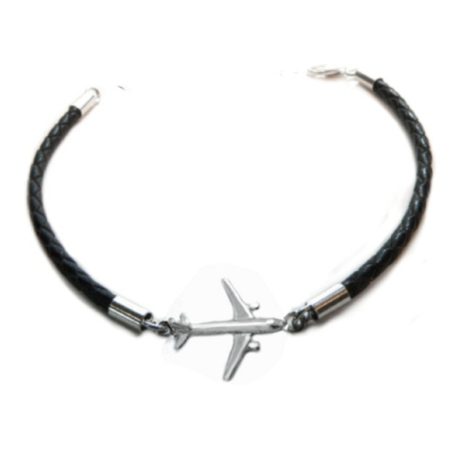Pulsera A320, en plata 1ªLey, cuero trenzado 3mm negro