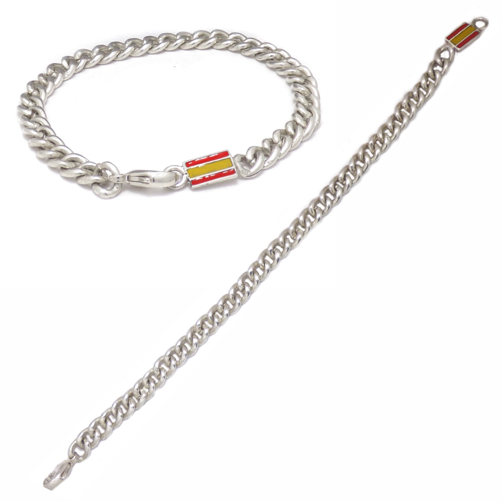 Pulsera barbada (b) , con bandera españa en cierre, en plata 1ªley y esmalte al fuego