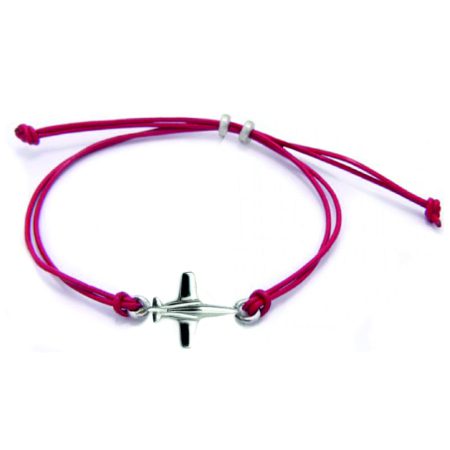Pulsera emblema aviación civil en plata, esmalte al fuego , cuero 1mm. color rojo