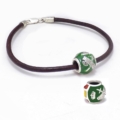 Pulsera cuero 3mm , con colgante (charm) Guardia Civil (a), en plata y esmalte al fuego