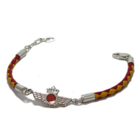 Pulsera emblema ejer. aire en plata 1ªLey y esmalte al fuego , cuero trenzado 3mm. colores españa