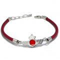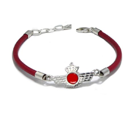 Pulsera emblema ejército aire en plata con esmalte al fuego y cuero rojo 3 mm.