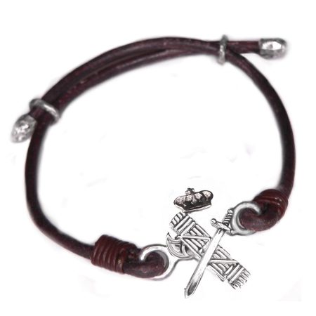 Pulsera Guardia Civil, en Plata 1ªLey con cuero redondo marrón