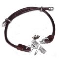 Pulsera Escapulario, en Plata 1ªLey con cuero redondo marrón