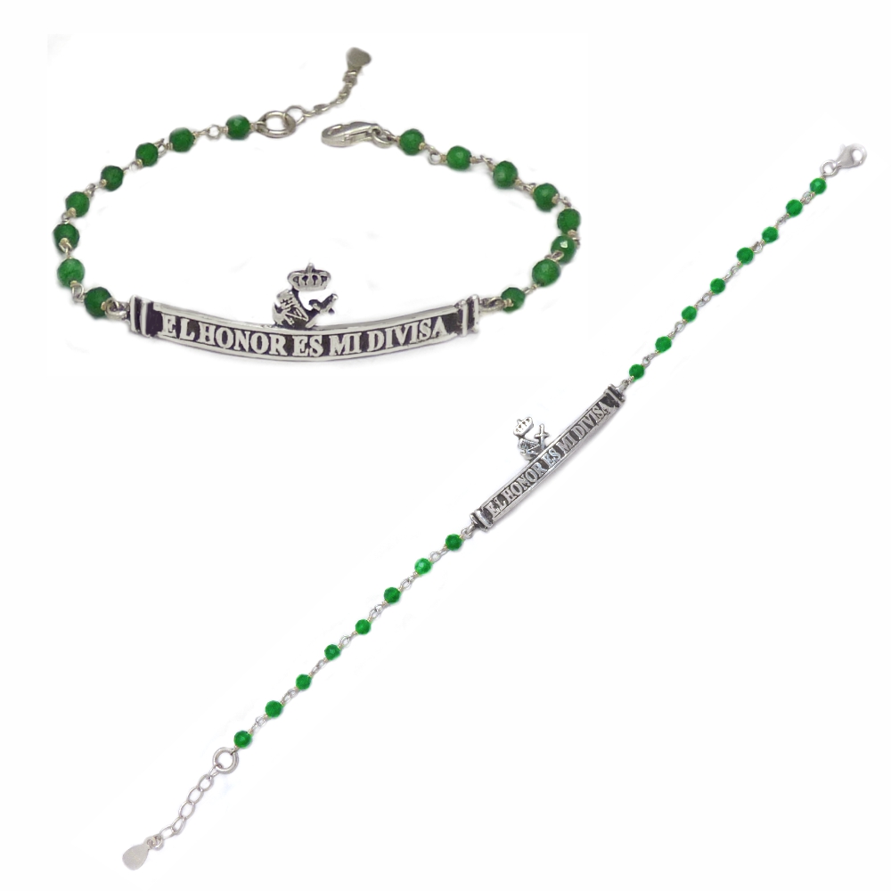 Pulsera Guardia Civil Honor(b), en plata 1ªley, cristal verde facetado